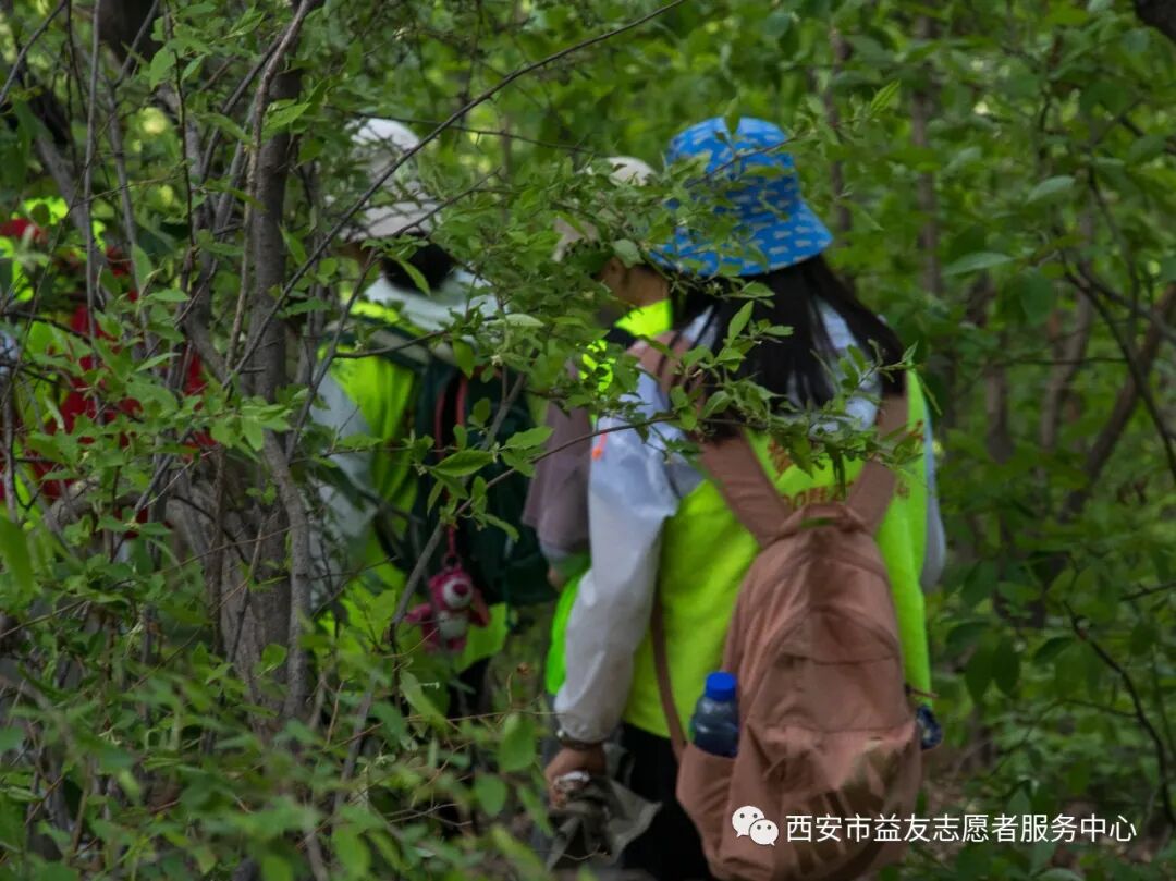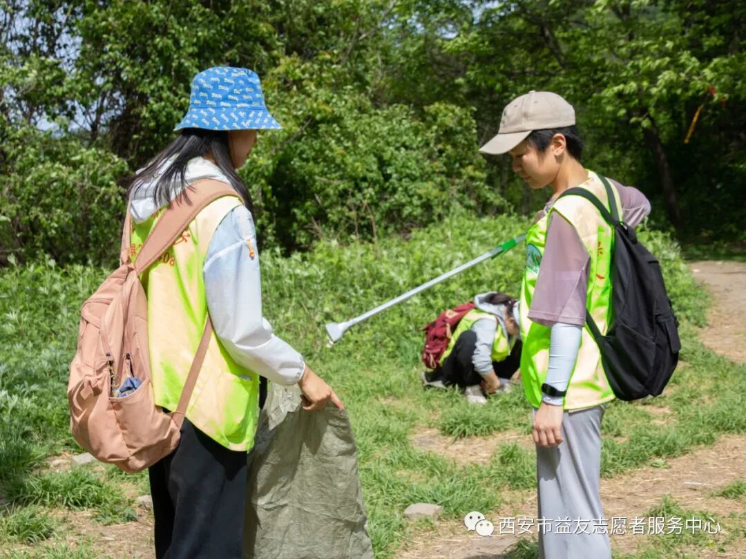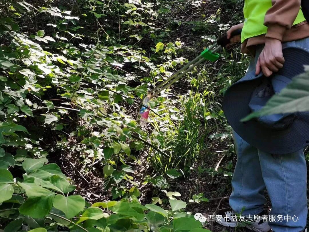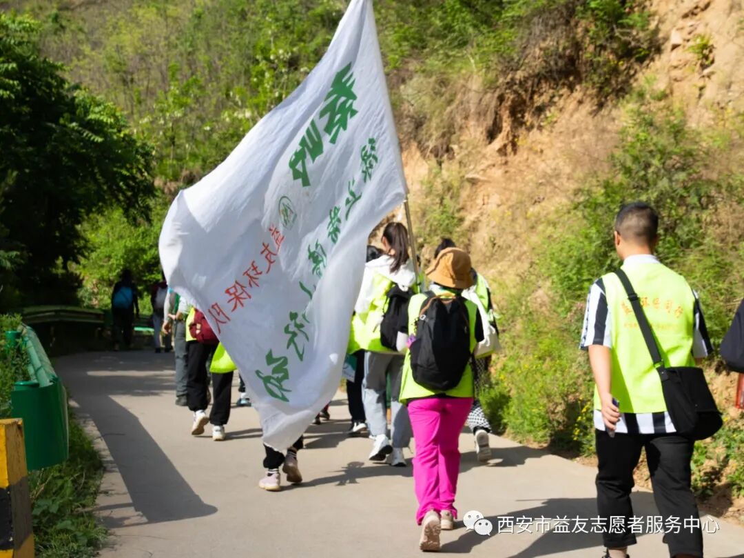 2023年5月1日西安市益友志愿者服务中心开展第十三期土地梁绿丝带清山行动。